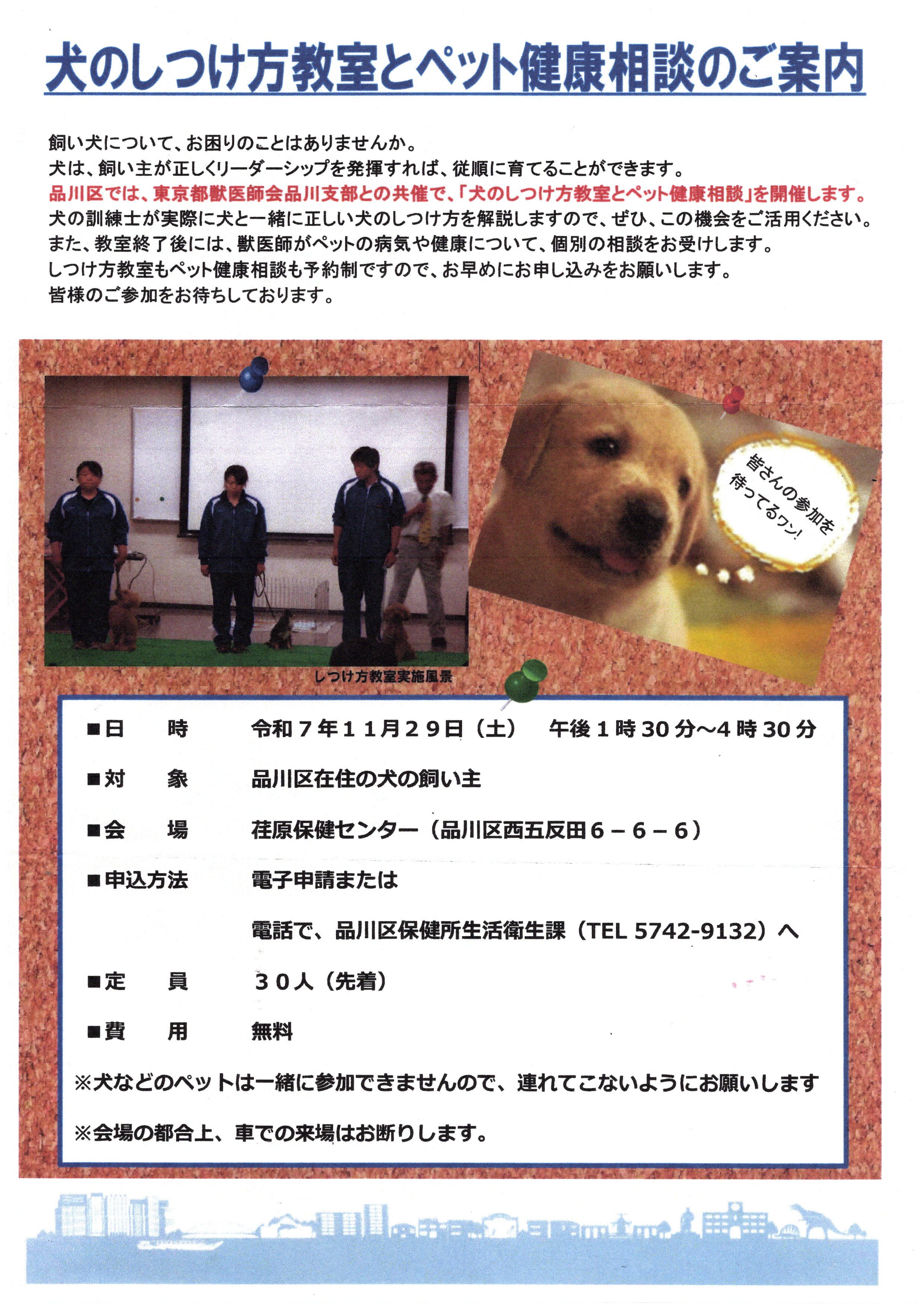 2025年11月26日犬のしつけ方教室とペット健康相談のご案内